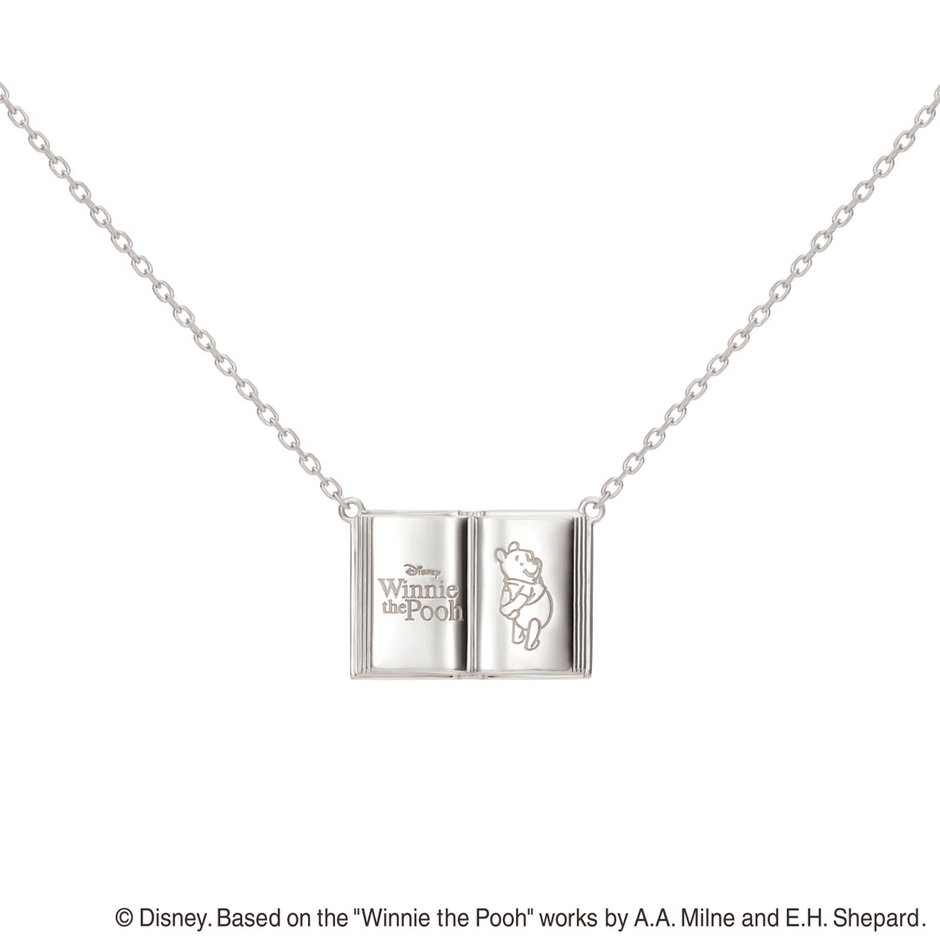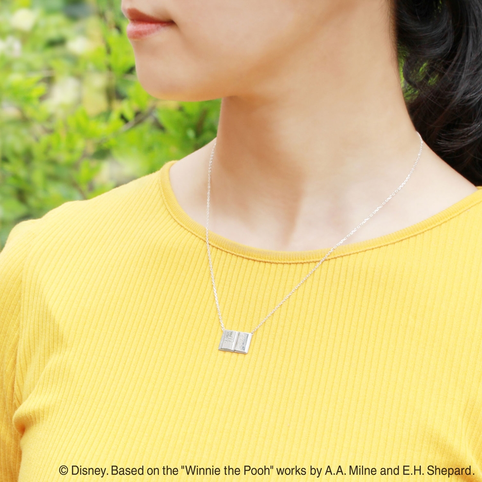 まるで小さな絵本のようなブック型のネックレス。『くまのプーさん』のやさしくあたたかな物語をいつでもそばに感じて…。四角いフォルムがすっきりとした印象のシンプルなデザイン。一見、キャラクタージュエリーには見えないさりげなさもポイントです。
