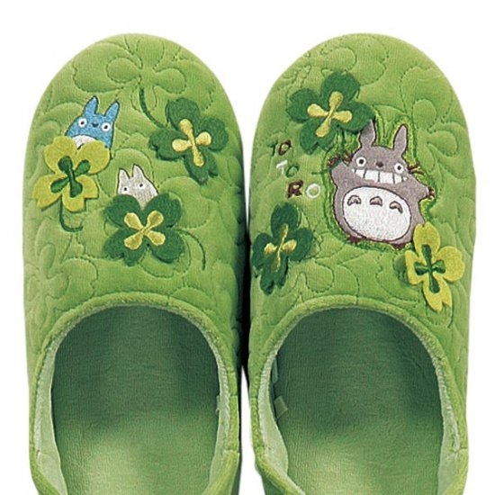 トトロたちが勢ぞろい♪フェルト生地で作られたクローバーも可愛いですよね。よく見るとルームシューズにはTOTOROの文字が刺繍されているんです。