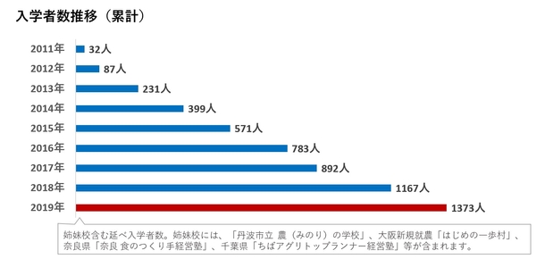 2019年の農業を振り返ると自然災害による被害にフォーカスした報道が多かった印象ですが、アグリイノベーション大学校では入学者数(就農希望者等)が前年並みに推移し、延べ1,373名を数えました。