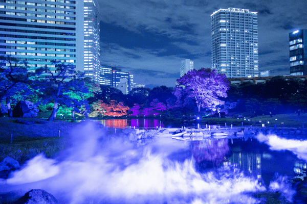日本各地の伝統文化に先端のクリエイティブやテクノロジーを掛け合わせ、日本庭園や史跡等の夜の魅力を「和」のテイストで引き出す「夜会 by 1→10」を、2019年に東京の旧芝離宮恩賜庭園と名古屋城で開催しました。
