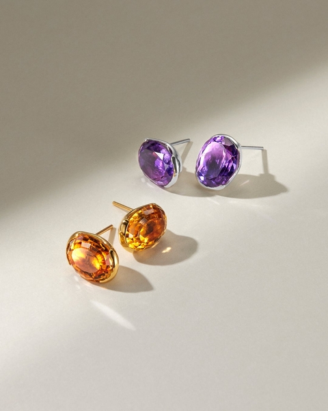 新コレクションのジェムストーンには、大粒で色彩やかな "シトリン"と"アメシスト” を採用。 ジェムストーンのアップサイクルはあまり馴染みがないかもしれませんが、70-80年代日本で大量生産されていたジュエリーで売れ残ったものや、地金を外して宝石の状態で長らく放置されていたものを、SARARTHがモダンなデザインのジュエリーに生まれ変わらせました。