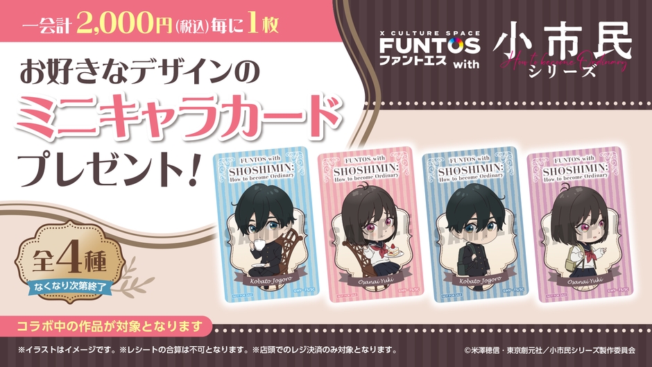 株式会社ソユーは、コラボレーションスペース事業「ファントエス」最新弾として、「ファントエス with 小市民シリーズ」を全国のファントエスおよびオンラインショップにて2024年8月30日(金)~2024年9月24日(火)の期間限定で開催いたします。