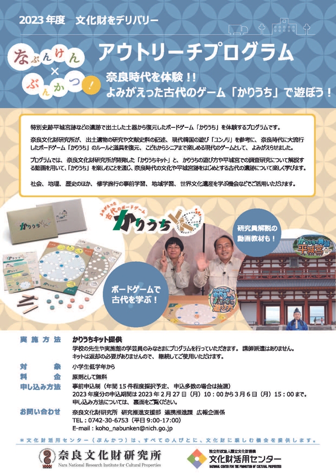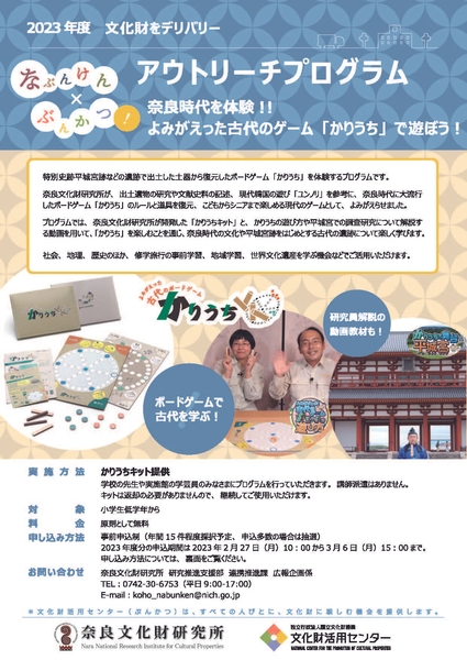 「奈良時代を体験!!よみがえった古代のゲーム「かりうち」で遊ぼう!」のちらしを公開します。