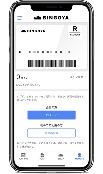 これまで配布していた「BINGOYAメンバーズカード」(プラスチックカード)をアプリ上のデジタル会員証へ移行。以前のメンバーズカードで溜まっていたポイントもアプリに統合することが可能。溜まったポイント数や会員ステータスは会員証画面でご参照いただけます。