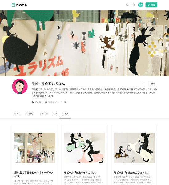 noteはあらゆるクリエイターの本拠地となることを目指しています。そのため、テキストだけではなく、イラスト、マンガ、映像、写真、音楽など、あらゆるジャンルの作品をnote上で表現していただけるようにカイゼンを重ねています。「ストア」機能では、自分自身で商品をつくり販売しているクリエイターが、noteで商品を紹介したりその商品のストーリーをnoteに投稿したり、さまざまな使い方で商品の認知向上やファンコミュニティの醸成に役立てていただくサポートをします。
