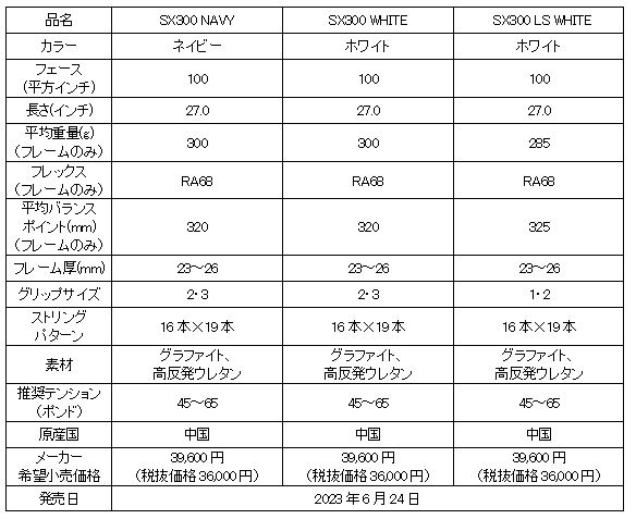 住友ゴムグループの(株)ダンロップスポーツマーケティング(社長:木越 浩文)は、ダンロップのスピン系テニスラケット「SX」シリーズの新デザイン2色3モデル(「SX300 NAVY」「SX300 WHITE」「SX300 LS WHITE」)を2023年6月24日から数量限定で販売します。メーカー希望小売価格は、すべて39,600円(税抜価格:36,000円)です。