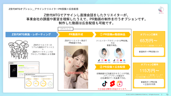 Z世代MTGにてアサインし、直接会話をしたクリエイターを活用して、PR動画の作成・投稿・広告配信を行います。