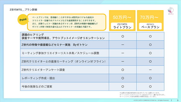 ■「Z世代MTG」プラン詳細