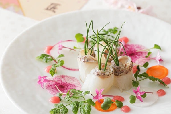 桜の花が咲くころに旬を迎えることから“春の風物詩”といわれている桜鯛と彩り野菜で、華やかなガーデンを表現。