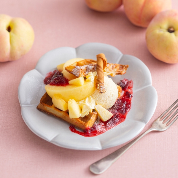 『おかやま白桃のカスタードワッフル ベリーソース添え』