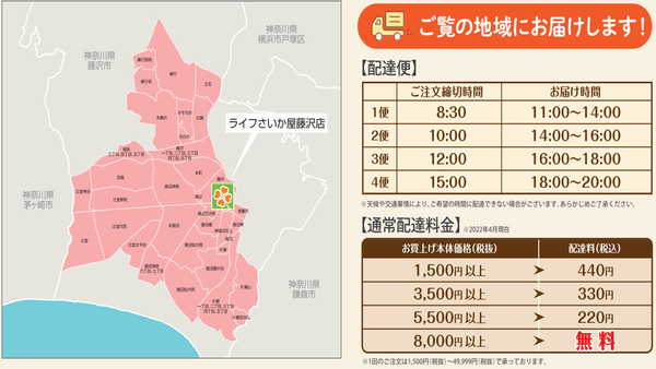 “おいしい” “ワクワク” “ハッピー” をお届けするライフコーポレーションは、10月30日(水)から「さいか屋藤沢店」でライフネットスーパーのサービスを開始しました。