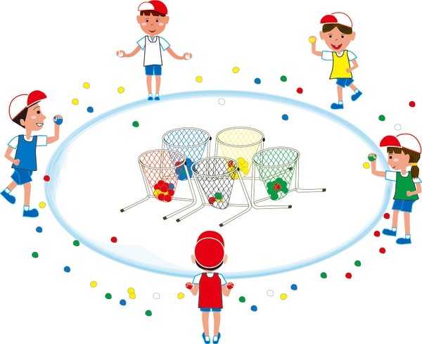 バラバラに撒かれたボールを、自分のカラーのカゴに入れる。