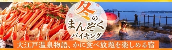 冬のご馳走の代名詞、かにも食べ放題!種類豊富なメニューとかに食べ放題を組み合わせて楽しむ冬のまんぞくバイキング。大江戸温泉物語 宮城県と石川県の宿で12月1日いよいよスタート!
