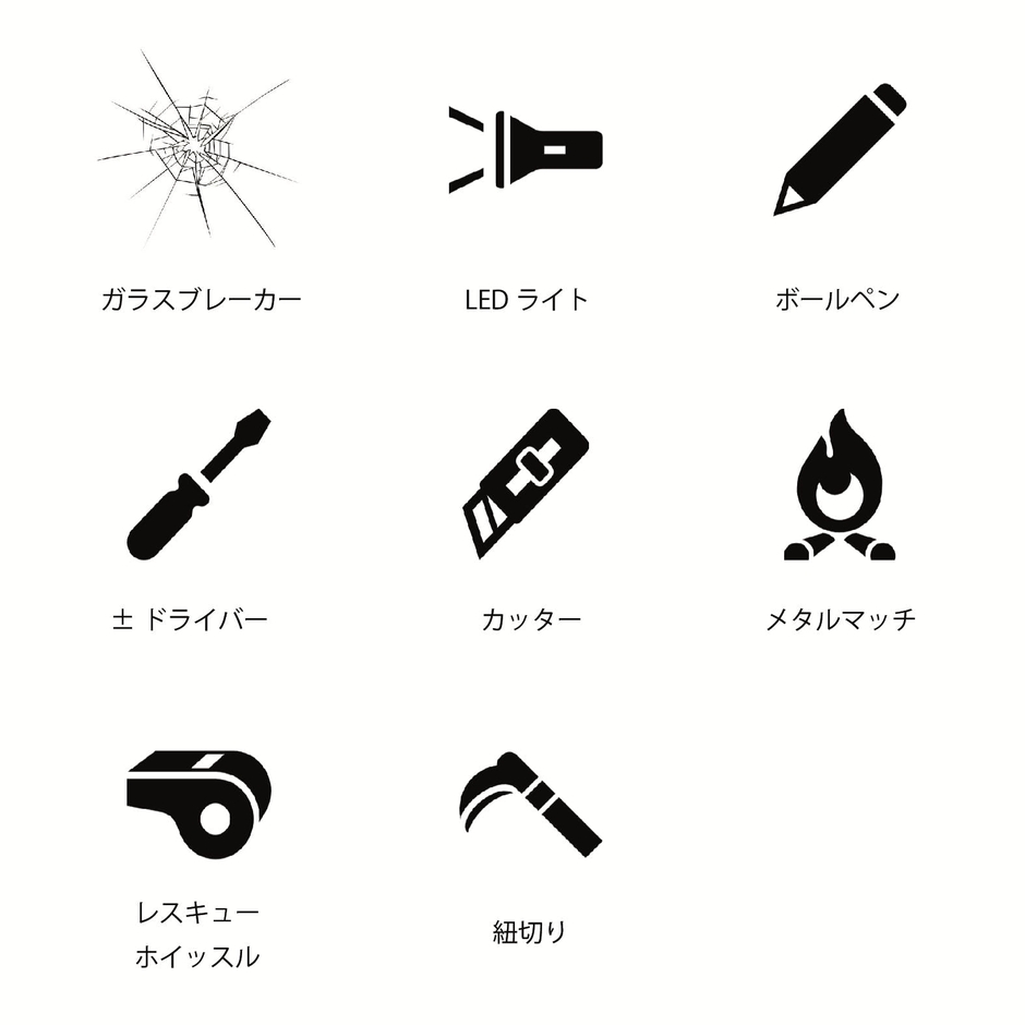 災害時や緊急時、急いでる時ほどシートベルトを上手く外せなかったりするものです。そんな時はタクティカルペンをさっと取り出し、シートベルトを紐切りカッターでカットすることで、一刻も早い脱出を可能にします。