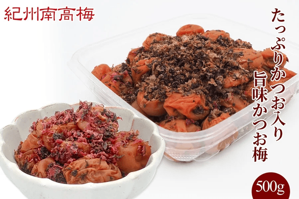 〇紀州南高梅 たっぷりかつお入り 旨味かつお梅 塩分8% 500g