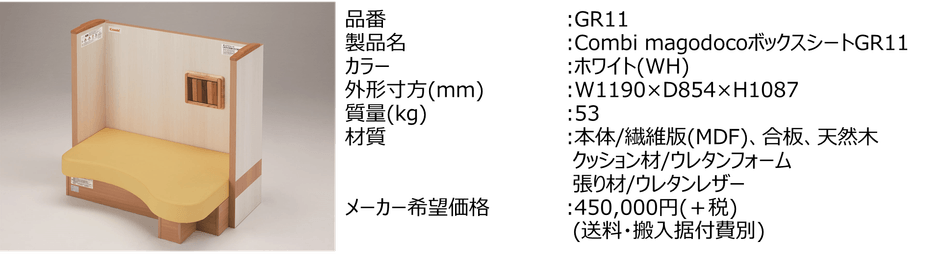 コンビ株式会社の100%子会社で、お母さんと赤ちゃんの外出支援事業・保育事業を行っているコンビウィズ株式会社は、3世代でお出かけしやすい施設・店舗づくりのための施設用什器「Combi magodocoボックスシートGR11」を2019年10月に発売いたします。