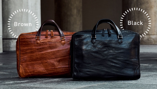 一般的なブリーフケースといえばナイロン製がほとんどで今や百貨店やセレクトショップでもなかなか牛革製のものを見ることが少なくなりました。今回のバッグは素材にもこだわり、上品なだけでなく、男らしくタフな雰囲気も兼ね備えました。