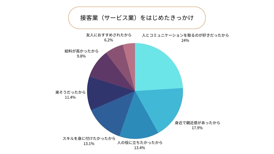 接客サービス業をはじめたきっかけ第1位は「人とコミュニケーションを取るのが好きだったから」で24%。