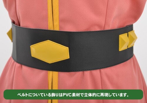 ベルトはマジックテープで簡単に着脱でき、サイズ調節も可能です。飾りは塩ビ、ビニールなどとも呼ばれるPVC(ポリ塩化ビニル)素材を使用。軽くて汚れにくい素材なので、外でのコスもばっちりです!