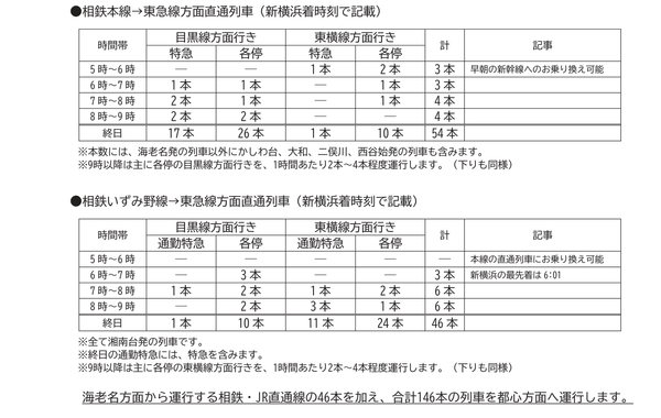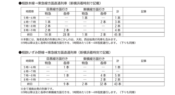 2023年3月18日(土)開業 相鉄・東急直通線 運行計画(運行区間・列車本数)のお知らせ【相模鉄道】