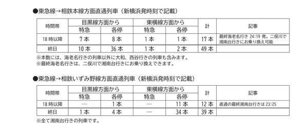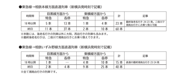 2.相鉄・東急直通線の列車本数・行き先(平日ダイヤ)