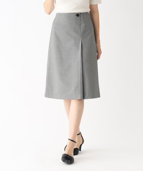 ラップスカート風ですが、はだけない作りになっているので安心感のある1着。付属ボタンにあしらわれたさりげないゴールドラインのデザインが上品さをプラスしてくれます。
