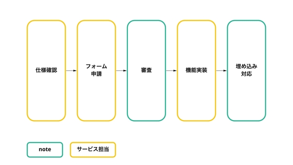 4. 実装の連絡 : 機能が実装されましたら、担当までお知らせください。該当URLがnoteに埋め込まれるように設定いたします。