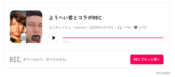 REC.の埋め込みカードをクリックすると、音声がnoteの記事上で直接再生できたり、REC. への投稿にアクセスできたりします。このように、サービス提供者がデザインや表示項目を決めて開発いただけるので、サービスの魅力がnote上でそのまま再現されます。