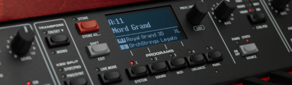 「Nord Grand」のファクトリーバンクは、10 種のグランドピアノ、9種のアップライトピアノ、10 種のエレクトリックピアノ、デジタルピアノなど幅広い音色を搭載しています。さらに、さまざまな音色のピアノ音源がラインアップされている「Nord Piano Library」から無償で音源をダウンロードし音色を入れ替えることで、好みの音色、ライブで必要な音色を使うことが可能となり、さまざまなシーンで活躍します。