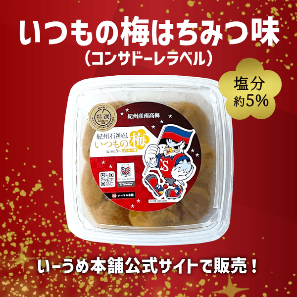 株式会社イークラフトマンは、北海道コンサドーレ札幌のクラブパートナーとして、この度、オフィシャルライセンス商品「いつもの梅 はちみつ味 コンサドーレラベル」(1,850円税込)の新バージョンを、2025年6月24日(火)より、いーうめ本舗ECサイトにて販売開始します。さらに、6月28日(土)からは、大和ハウスプレミストドーム内「コンサベース」で、新商品「ちょこっとやまとの梅 コンサドーレラベル」(980円税込)の発売も決定しました!