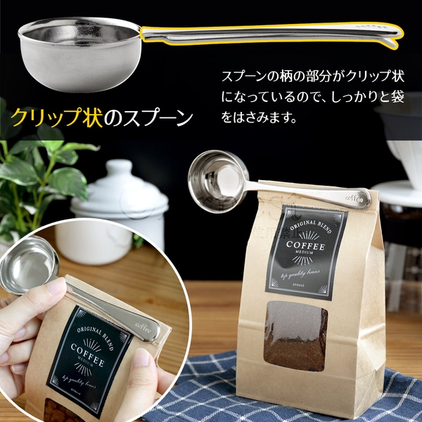 メジャースプーンとバッグクリップがひとつになっているので、探す手間も省けます。