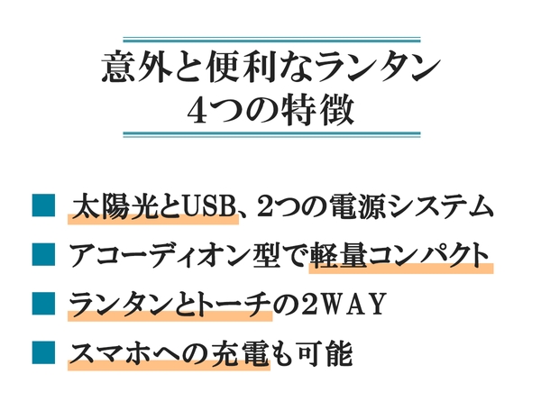 小さなボディで何役もこなす働きモノ。急な災害時への備えとしても役に立ちます!