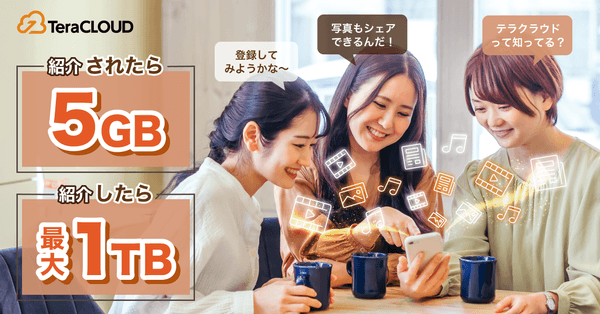 紹介されたら【5GB】紹介すると【最大1TB】もらえる❗️「TeraCLOUD」をドンドン周りに広めて、たっぷり追加容量GETしよう✨