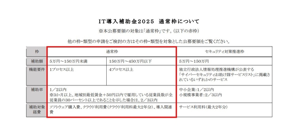なお、ご利用には電子天秤・プリンタ・タブレット等のハードウェアが別途必要です。2025年度版の応募枠は『通常枠』が該当し、『供給・在庫・物流』および『その他業務固有のプロセス』の「1プロセス以上」システムに区分されています。