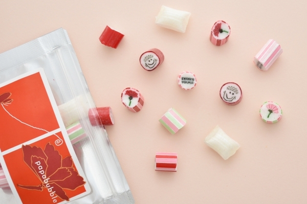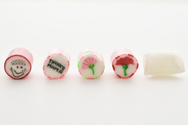 カーネーションやありがとうのメッセージが入ったキュートなキャンディは母にぴったり。