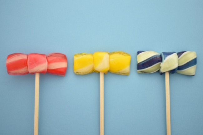 フレーバーは左から、赤:いちご、黄:コーラ、紺:ソーダ