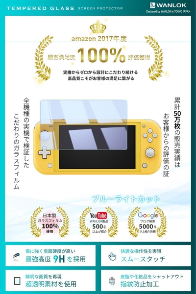 モバイルアクセサリー関連の商品開発や製造・販売を手がけるWANLOK 合同会社(本社:東京都渋谷区、運営責任者:菅原克仁)は、この度、任天堂製「Nintendo Switch Lite ブルーライトカット 【目疲れ軽減度UP】 ガラスフィルム 90% ブルーライトカット」を、Amazon Cyber Mondayに合わせ、20%OFFでセール開始しました。