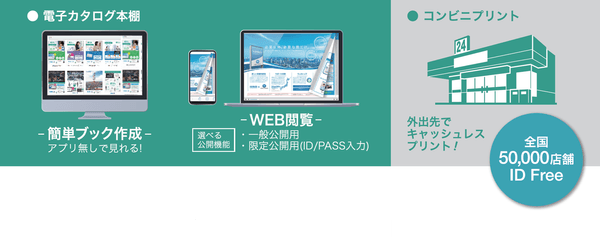 キンコーズ・ジャパン株式会社が提供するのは、カタログや提案資料を電子カタログ化し、必要なときに最寄りのコンビニエンスストアでプリントアウトできる「WILテレワークブック」。印刷したいカタログや提案資料などをオンラインで選択し、プリント用IDとパスワードを取得後、コンビニエンスストアでプリントアウトができます。しかも、プリント費用はまとめて会社に請求されるため、店頭での支払いは一切不要です。