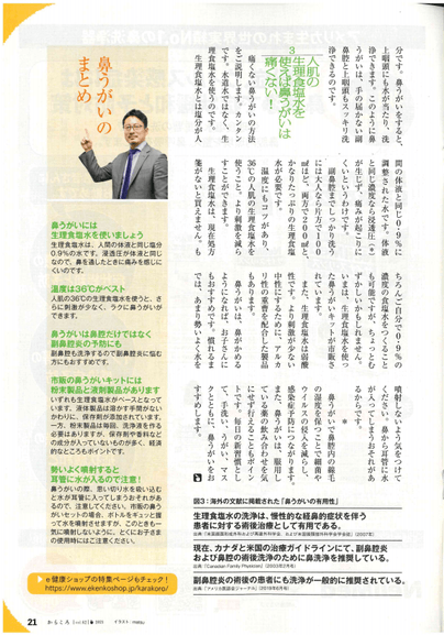 コラム及びニールメッド・鼻洗浄器「サイナスリンス」・「サイナスリンスキッズ」広告が掲載されました。(20~22P)