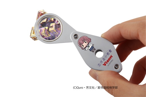 第4話、夏合宿の地質標本館で“桜井美景”が鉱物や化石を観察する際に使っていたルーペは、メタルホルダー「MT19」がモデルとなっています。かわいくデフォルメされたルーペを持つ“桜井美景”と「恋する小惑星(アステロイド)」のロゴをデザインしました。