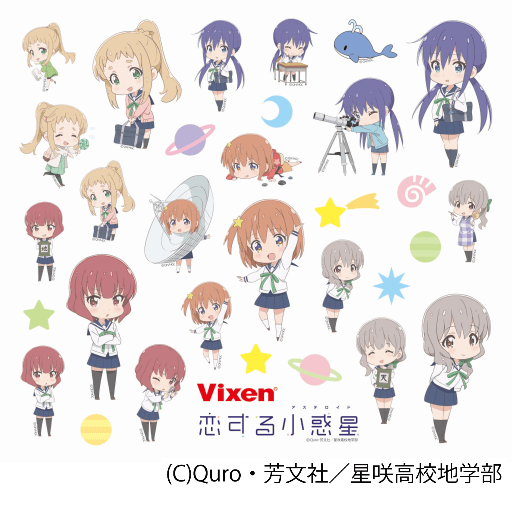 総合光学機器メーカー株式会社ビクセン(本社:埼玉県所沢市、代表取締役:新妻和重)は、TVアニメ「恋する小惑星(アステロイド)」とコラボレーションし、作中に登場するアイテムにオリジナルデザインを施した商品を2020年5月1日(金)に発売します。ラインナップは、天体望遠鏡、双眼鏡、ルーペの3商品です。