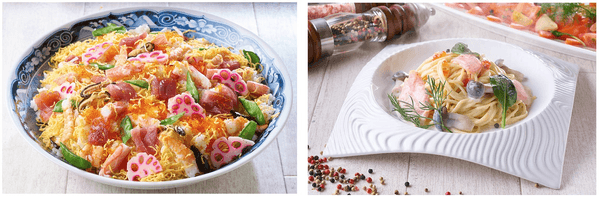 左:「漁師町風ちらし寿司」。海老や穴子など具材たっぷりの華やかな見た目もご馳走感たっぷり。