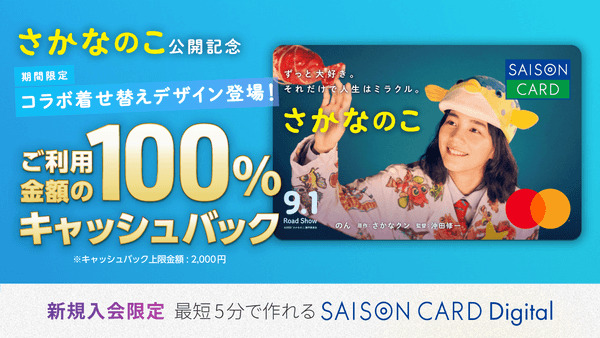 株式会社DOKUSO映画館(本社:東京都豊島区、代表取締役:⽟井雄⼤)は、株式会社クレディセゾン様のスマホ完結型決済サービス「SAISON CARD Digital」とコラボレーションし、映画『さかなのこ』の着せ替えデザインのデジタルクレジットカードを期間限定にて発行いたします。