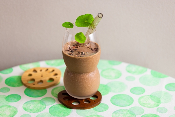 蓮ルームを楽しんだ翌朝には、ミキサー付き自転車「フェンダーブレンダー」を自分で漕いで、蓮の沼スムージーを作ります。チョコレートやバナナといった材料を入れたピッチャーを車体にセットし、30秒ほど全力で漕ぐと、蓮の生える沼をイメージした色のスムージーができます。収穫したばかりのれんこんのような形をしたグラスに注ぎ、コースターにのせれば完成!早朝に花を咲かせる蓮のように、朝から蓮ル(ハッスル)すると、オリジナルスムージーを味わえます。