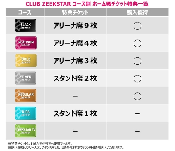 CLUB ZEEKSTARの有料会員になるとホーム戦チケットを一般に先駆けて購入できるほか、特典チケットや購入優待を使ってお得に観戦できます。