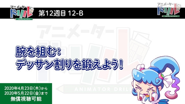 第2弾はアニメ制作編です。アニメータードリルの一部無償提供のほか、もともと無料公開しているアニメ制作の学習コンテンツについてもご紹介します。