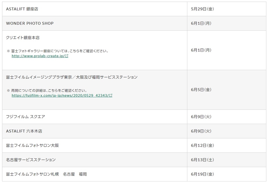 新型コロナウイルス感染症の感染拡大を防ぐため、富士フイルムグループの下記施設を当面の間、臨時休館とさせていただいておりましたが、順次再開しておりますのでお知らせいたします。