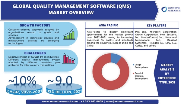 リサーチ・ネスターの一部門であるケネス・リサーチは最近、「品質管理ソフトウェア市場(QMS):グローバル需要分析と機会見通し2031」と題する調査レポートを発表し、エンドユーザー、展開、企業タイプ、地域別の市場セグメンテーションの観点から、世界の品質管理ソフトウェア(QMS)市場の詳細な概要を提供しています。