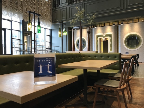 席の間引きやサイン掲示、オブジェ等の配置の工夫により、席の間隔を確保しています。