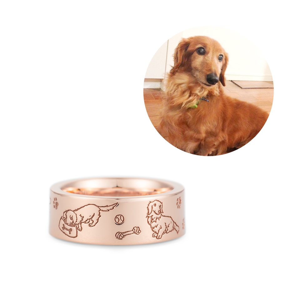 ダックスフンドの“雪之介くん”がよくしていた薄目を開けた表情やたくさんのポーズをデザイン。『手元を見るとそこにいるのが嬉しくてオーダーした当時も今も変わらず愛用している、世界でひとつの宝物です』